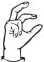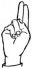 На ћирилици написано ЈЕЛЕНА КАЗИМИРОВИЋ састоји се из 17 слова [?]. Исписано ћириличном једноручном азбуком за глувонеме: